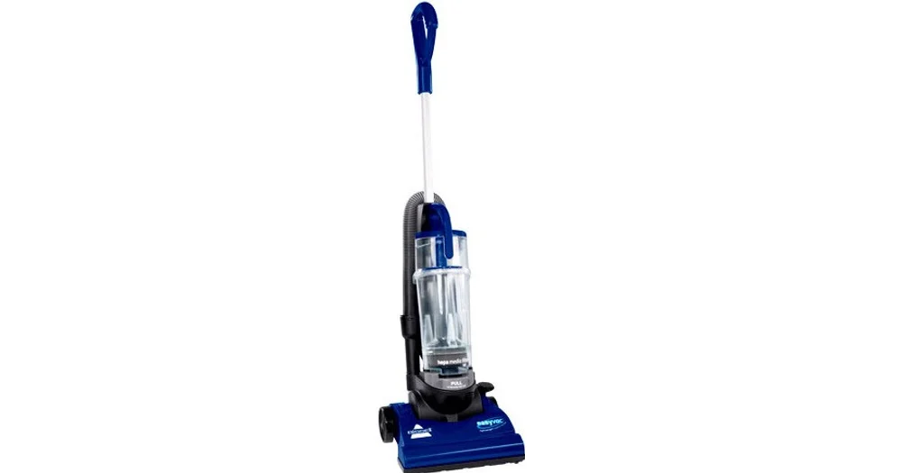This blue bissell easyvac upright bagless vacuum includes a hepa media filter and is both powerful and lightweight.