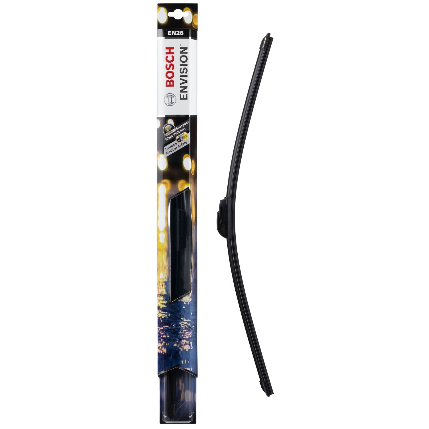 Bosch envision windshield wiper blade sharpens night visibility and offers extreme weather safety.